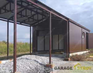 Гараж из сэндвич-панелей размером 6*5,5м с двускатной кровлей на ленточном фундаменте. Тульская область, Воловский район, д. Сухие плоты, трасса М4-Дон.