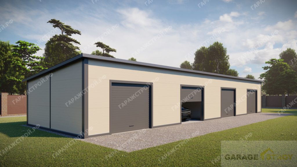 Гараж на 4 авто с хозблоком под ключ из сэндвич-панелей 6×20 м — решение, если нужно быстро построить большой тёплый гараж для четырёх автомобилей и одновременно получить отдельную хозяйственную зону для хранения и порядка. Такой формат удобен для семьи, техники или небольшого автопарка: каждый автомобиль заезжает в свой бокс, без перестановок и лишних манёвров, а хозблок берёт на себя всё «шумное» и объёмное — инструмент, резину, расходники, садовые вещи, оборудование. Каркасный контур на металлоконструкциях обеспечивает жёсткость и точную геометрию здания, а сэндвич-панели формируют энергоэффективный, герметичный периметр для круглогодичного использования: внутри проще поддерживать температуру, защищать помещение от продувания и снижать риск конденсата при правильно организованной вентиляции. Длинный формат 6×20 м помогает логично зонировать пространство: парковка отдельно, хранение отдельно, проходы и рабочие зоны — без “тетриса”. Компания «ГаражСтрой» выполняет строительство и монтаж под ключ: проектирование, прозрачная смета, договор, изготовление/производство комплекта, доставка и установка с гарантией от производителя.