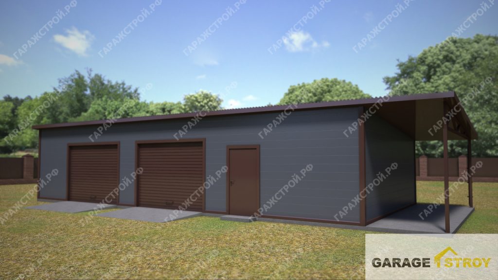 Быстровозводимый гараж из сэндвич-панелей с xозблоком и навесом под ключ