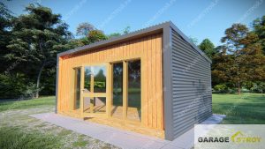Садовая комната отдыха Garden Room 6×4 м из сэндвич-панелей под ключ — решение, если нужно быстро построить тёплое пространство для отдыха на участке и пользоваться им круглый год. Garden Room можно сделать как тихий кабинет, мини-гостевую, творческую мастерскую или “чайную” комнату с видом на сад. Каркасный контур на металлоконструкциях обеспечивает жёсткость и точную геометрию, а сэндвич-панели формируют энергоэффективный, герметичный периметр: внутри проще держать комфортную температуру и снижать риск конденсата при правильно организованной вентиляции. Панорамное остекление с дверью создаёт много света и визуально расширяет пространство, а дополнительное окно с фрамугой помогает проветривать помещение. Водосточная система защищает фасад и основание от переувлажнения. Компания «ГаражСтрой» выполняет строительство и монтаж под ключ: проектирование, смета, договор, изготовление/производство комплекта, доставка и установка с гарантией от производителя.