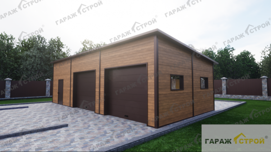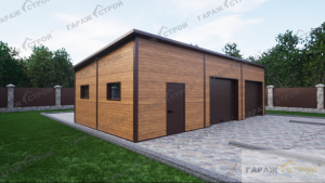 Каркасный гараж на 2 машины с хозблоком под дерево